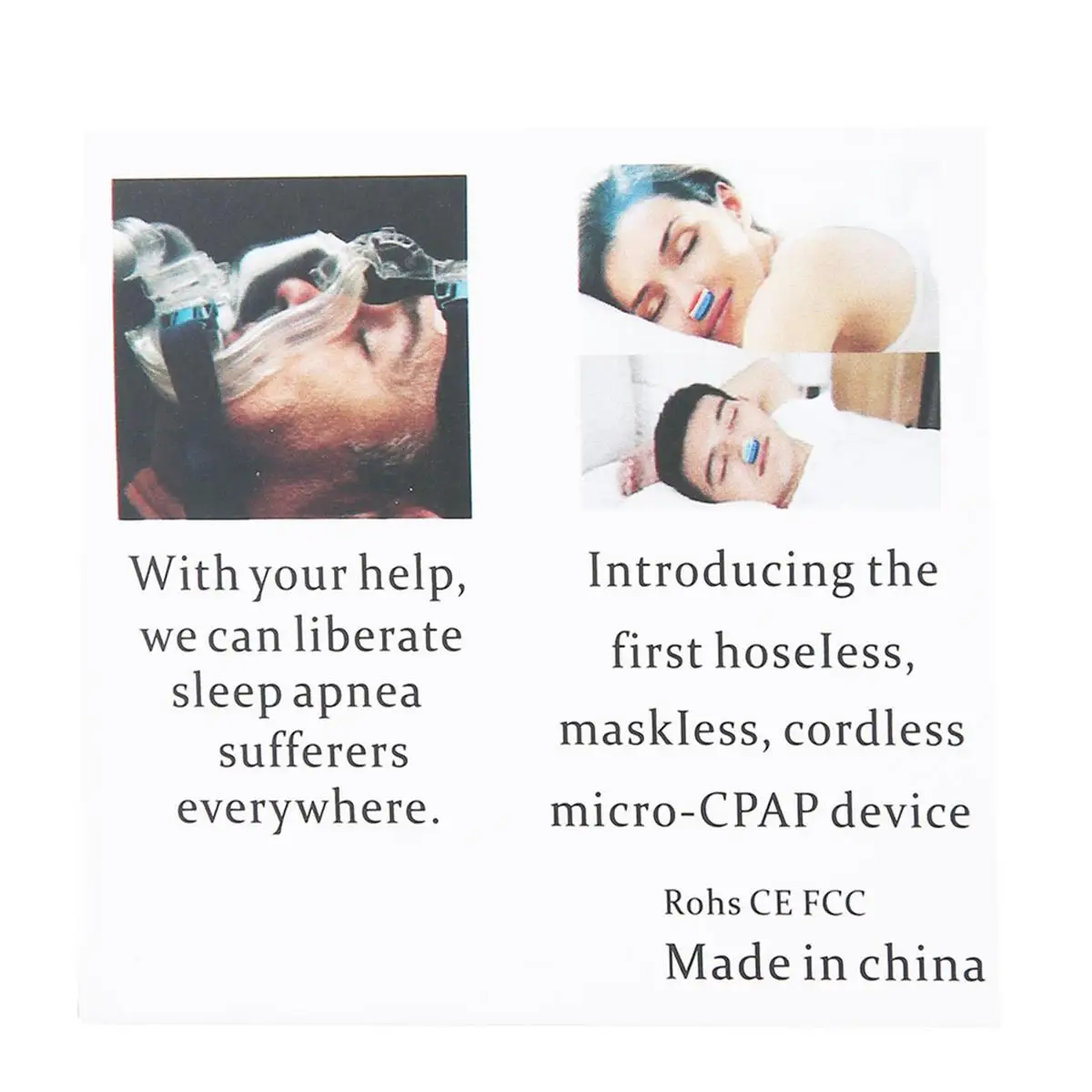 Electronic anti snoring device liberates you from hoses and cords, Electronic anti snoring device design is a byproduct of several inventions, chief of which are the micro-blowers originally intended for heat regulation for chips in computers. These micro-blowers are entirely contained within the Electronic anti snoring device is battery operatred. so no need for any power wires. Just ” plug” the cmfortable buds into your nostrils and breathe all night long.