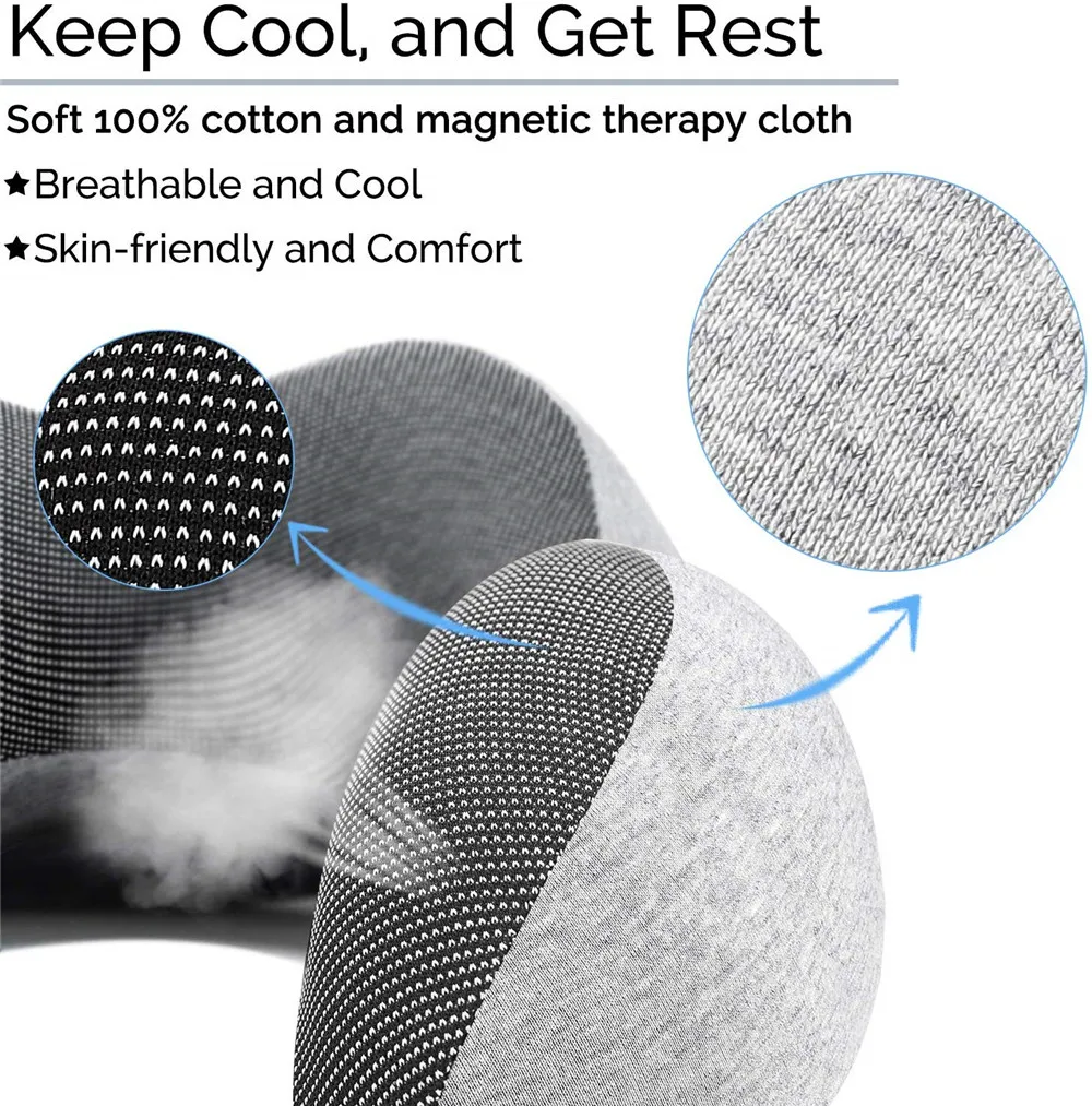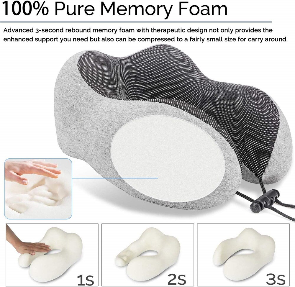 ✈【Ergonomic Sleep Design】This ergonomically designed memory foam pillow provides support without the bulk. With perfect curves shape design, this travel pillow can better fix your neck, prevents head from falling forward, relieves neck pain during travel. The adjustable rope lock allows you to customize the angle of the pillow, give you neck support and comfort during the long flights or endless car rides. 🚄【Keep Cool and Clean】Our U Shaped Neck Pillow covered in a mix of soft 100% cotton and breathable and super soft magnetic therapy cloth, millions of tiny premium microbeads inside, provides the maximum comfort on your trip. There’s a zipper for the machine-washable cotton cover, so you could remove it and wash it to keep your neck pillow fresh and germ-free, ready to go the next time you need it. 🚗【100% Pure Memory Foam】 Our travel pillow is made of high quality memory foam with 3 seconds rebound technology and therapeutic comfortable design. Memory foam gives you a good support and sleeping comfort as it responds to your body temperature and molds to the shape of your head and neck.